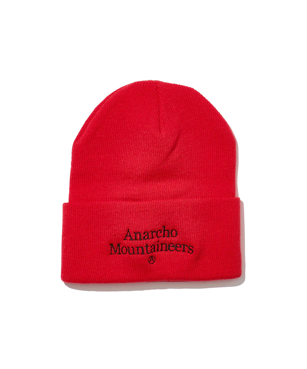 ”Anarcho Mountaineers”の刺繍入りのニットキャップ。アクリル素材で、ライトな被り心地。カラバリ豊富でっす✨